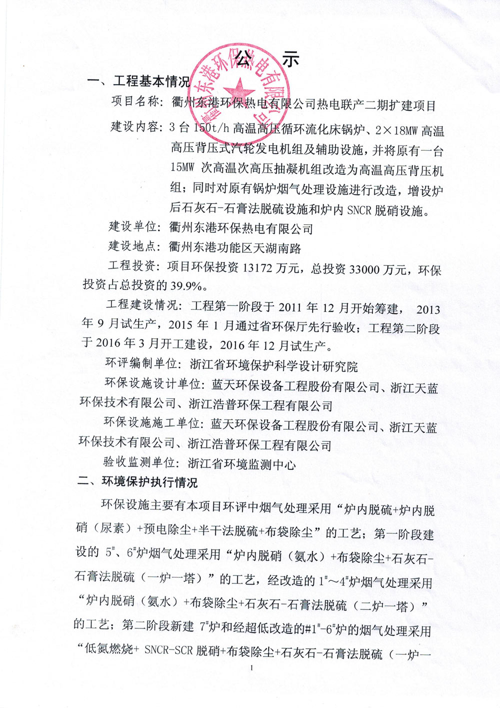 衢州東港熱電有限公司二期擴建項目噪聲、固廢驗收檢測結(jié)果公示